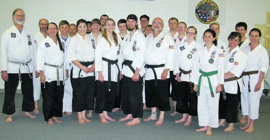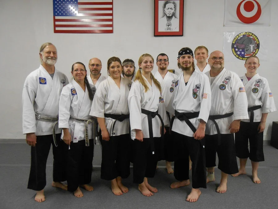 Here at Belen Goju Ryu Karate we had a great showing of Adults to help with the 3 1/2 hour Black Belt test for our four new Black Belts, Shodan LeeVanna, Shodan Mariah, Shodan Nick, and Shodan Rick. It was a great Friday night party at Belen Goju Ryu Karate!