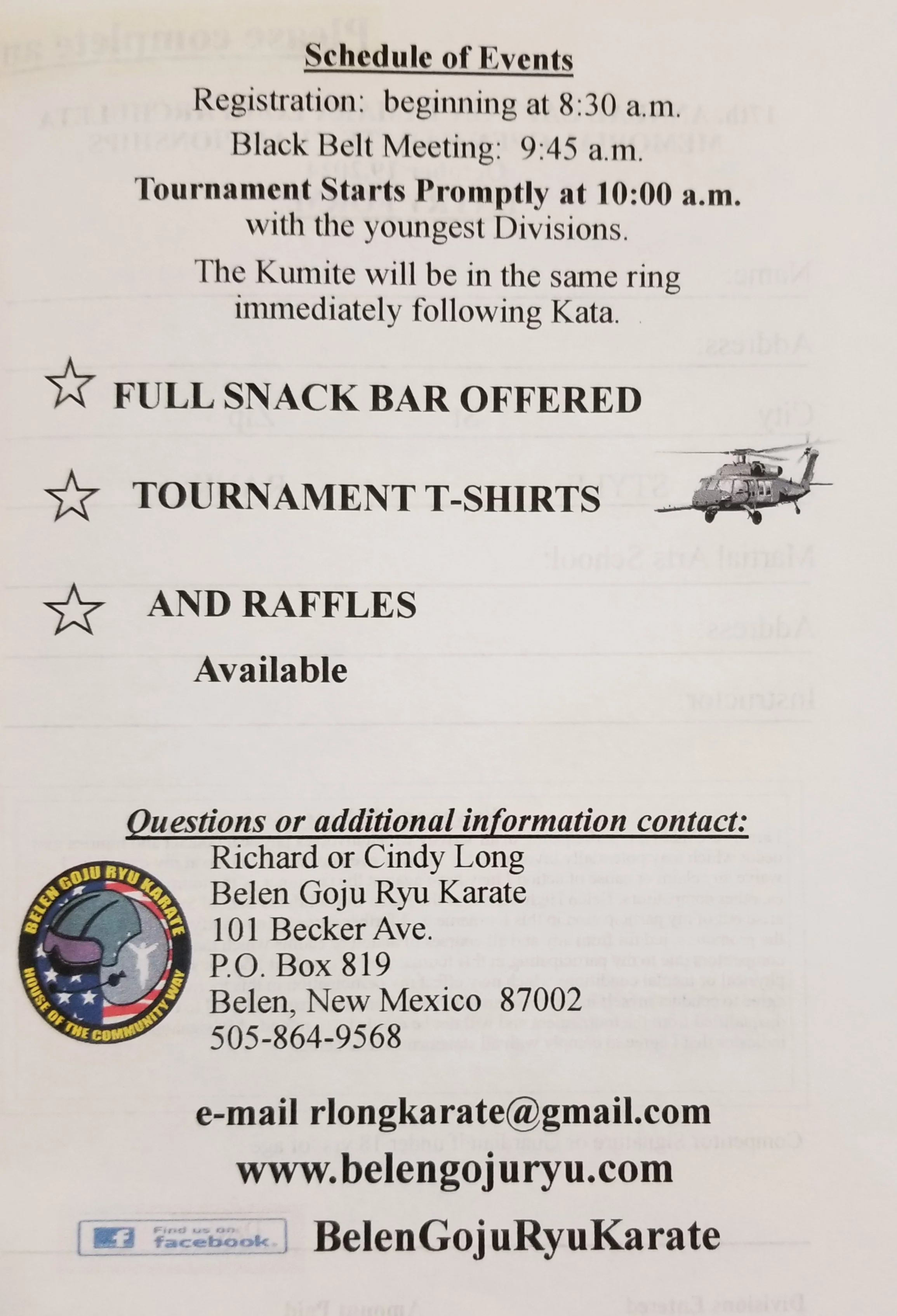 We have this event listed under events on our Facebook page - BelenGojuRyuKarate